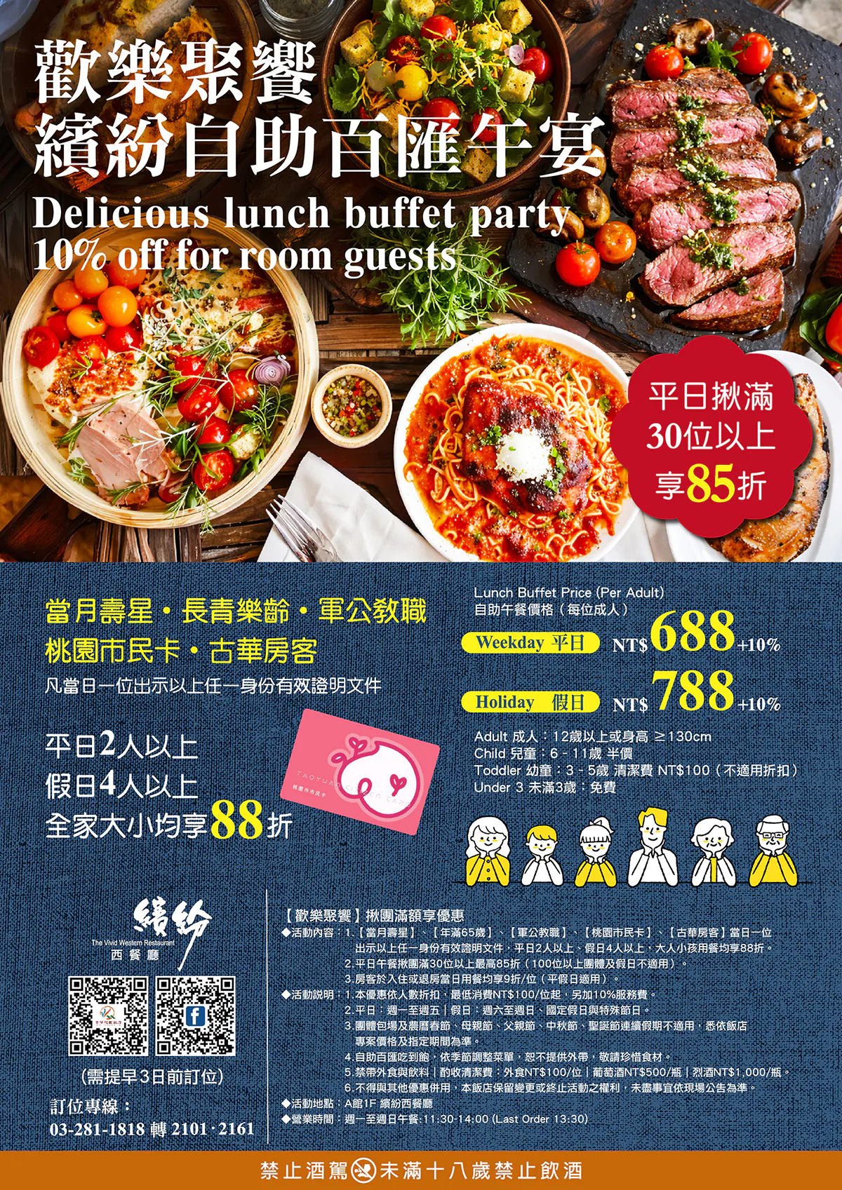 - 特殊節日之餐飲優惠與價格依現場公告為準,若有疑問歡迎提前來電洽詢。
