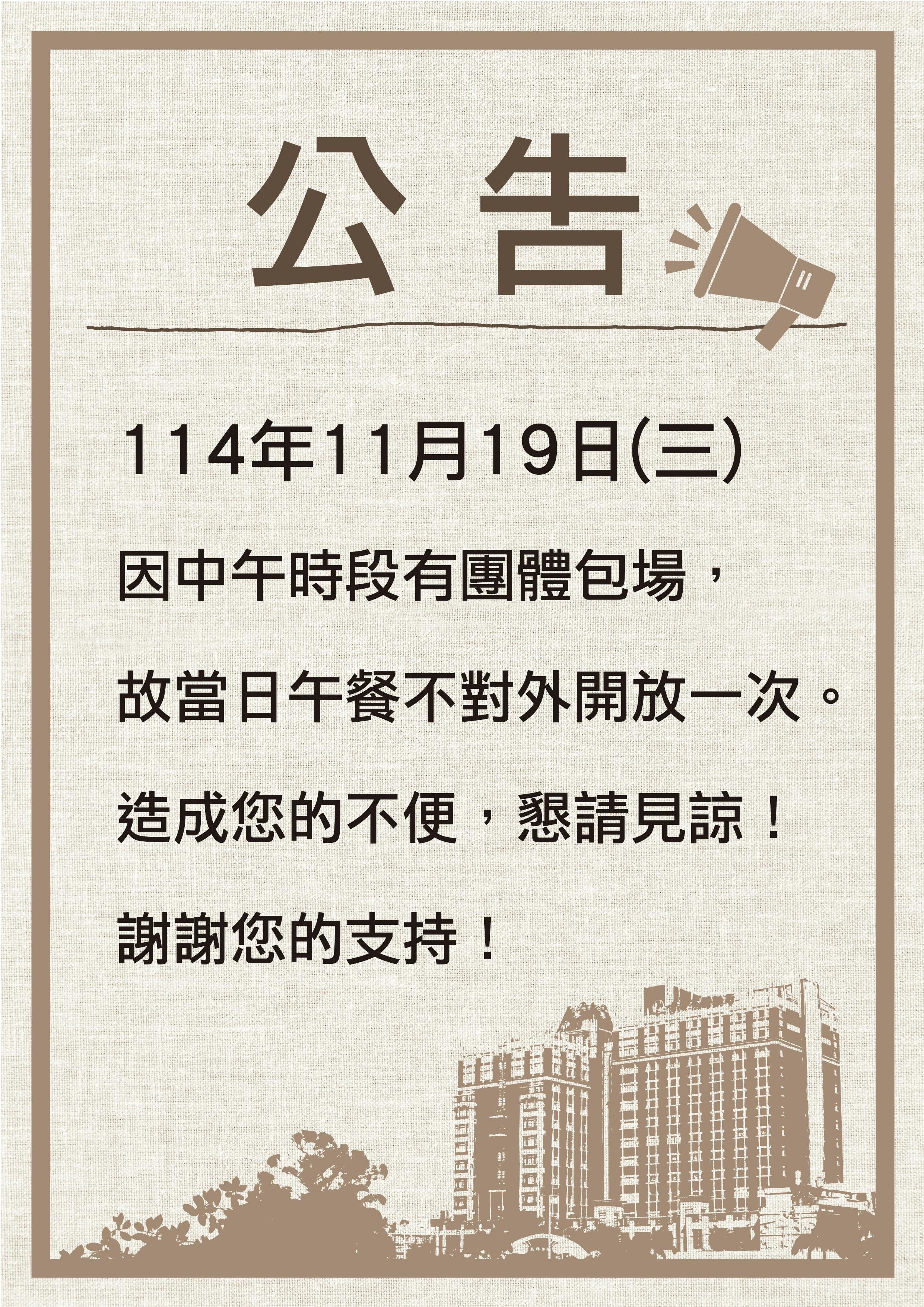 【繽紛西餐廳 11.19(三) 暫停對外開放】