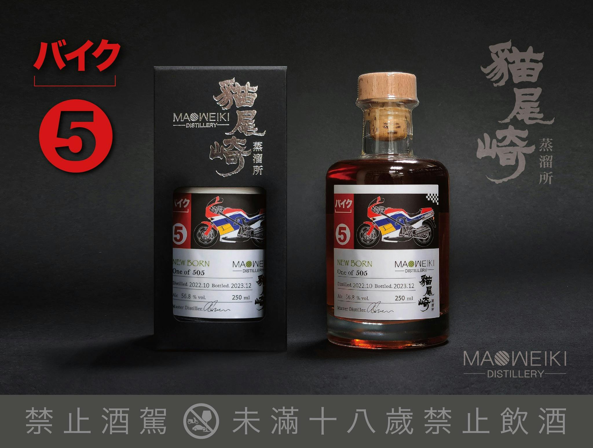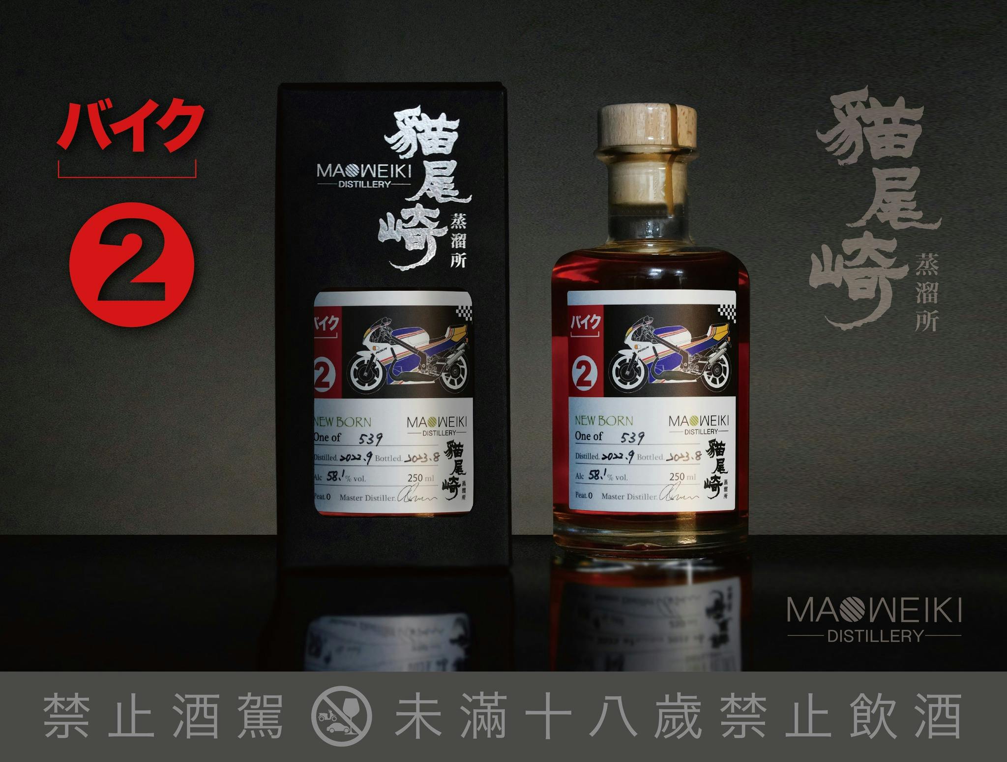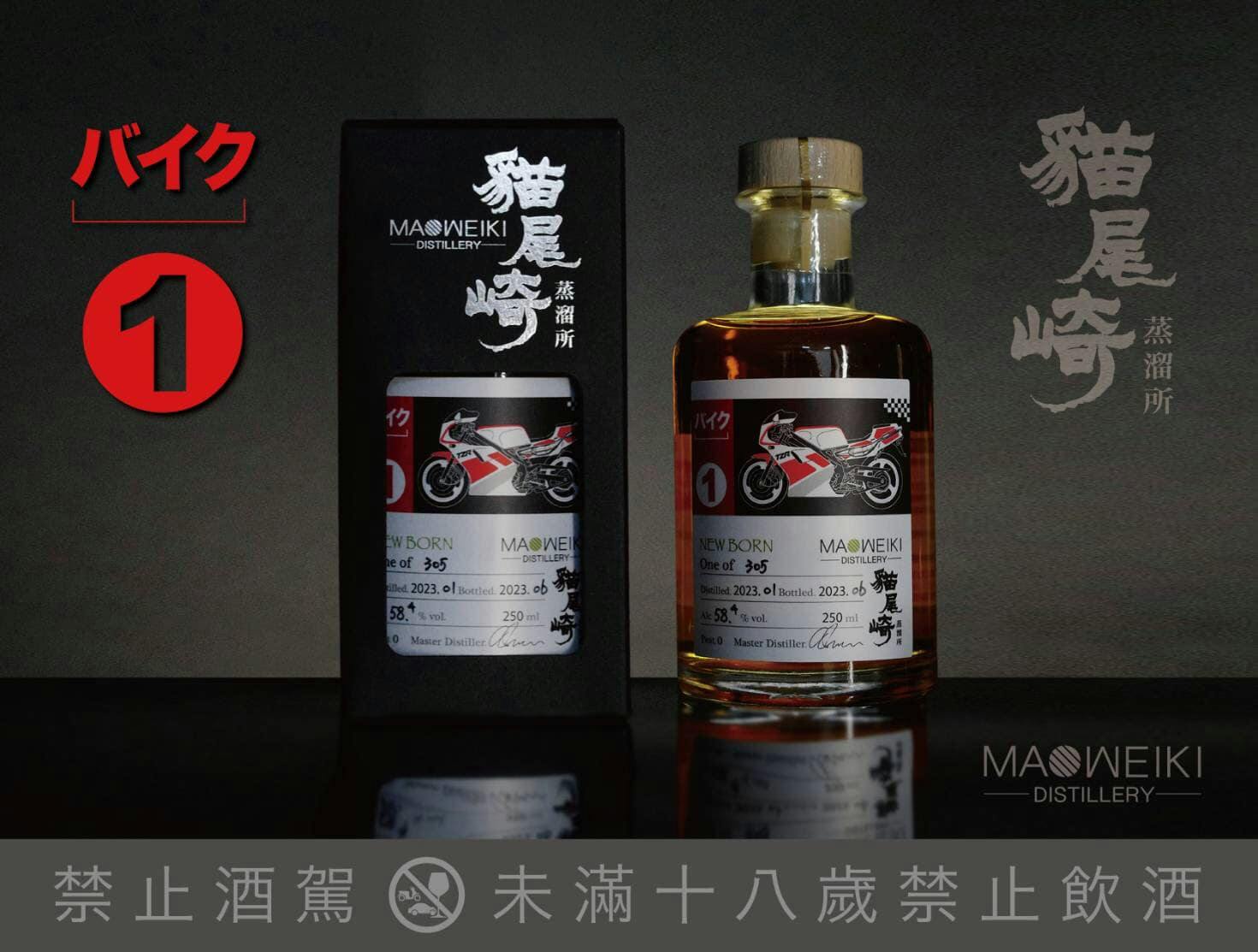 貓尾崎蒸溜所與知名經典重機社團 重機老野郎 合作,特別企劃的「摩托小威」經典系列,編號第2號的 NSR,將於2023年8月上市。「摩托小威」系列的設計重點在於詮釋經典年代的車型及刻意透視出來的排氣管型式。