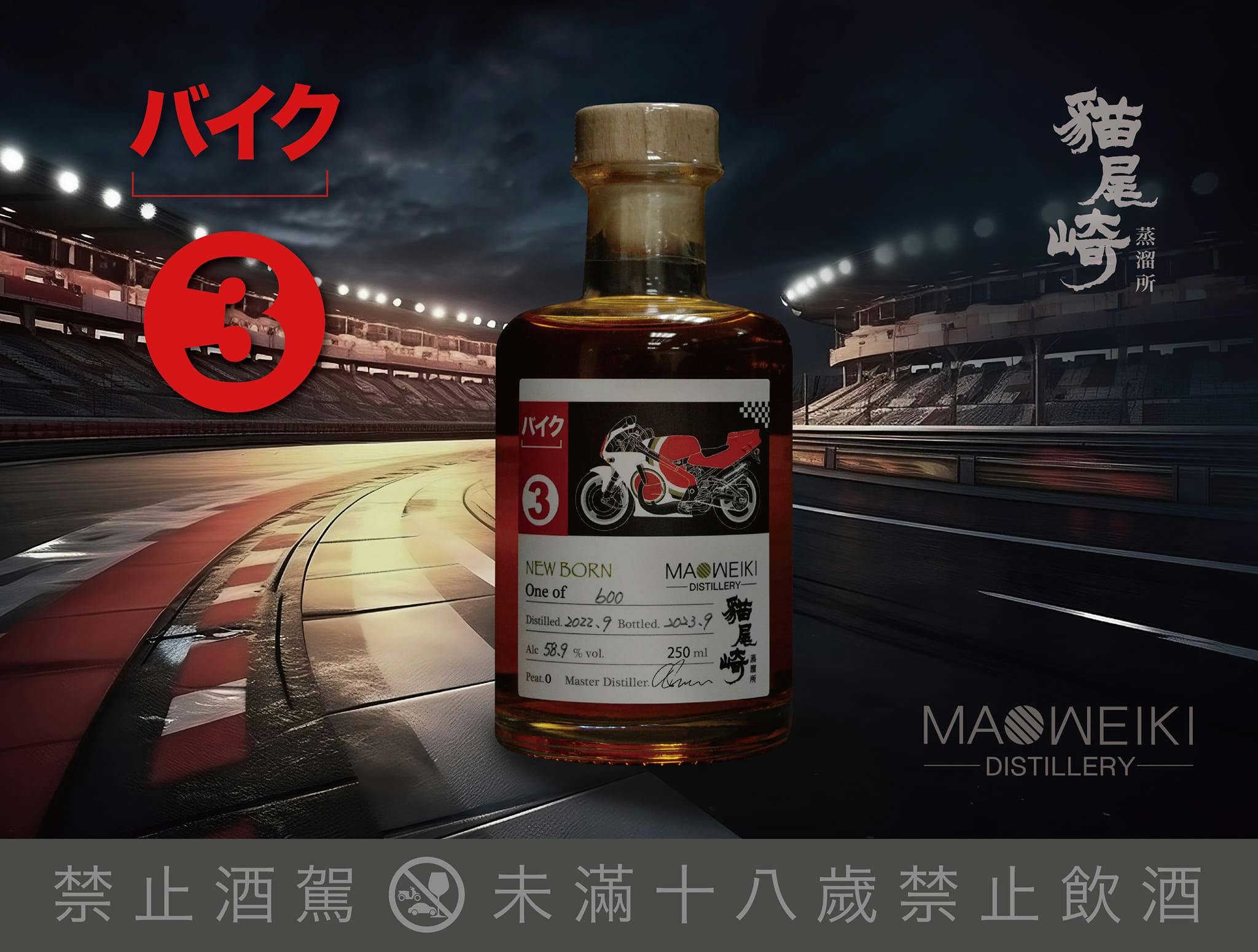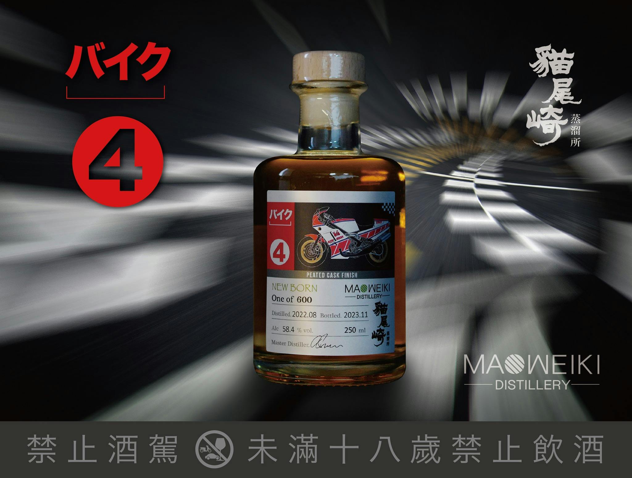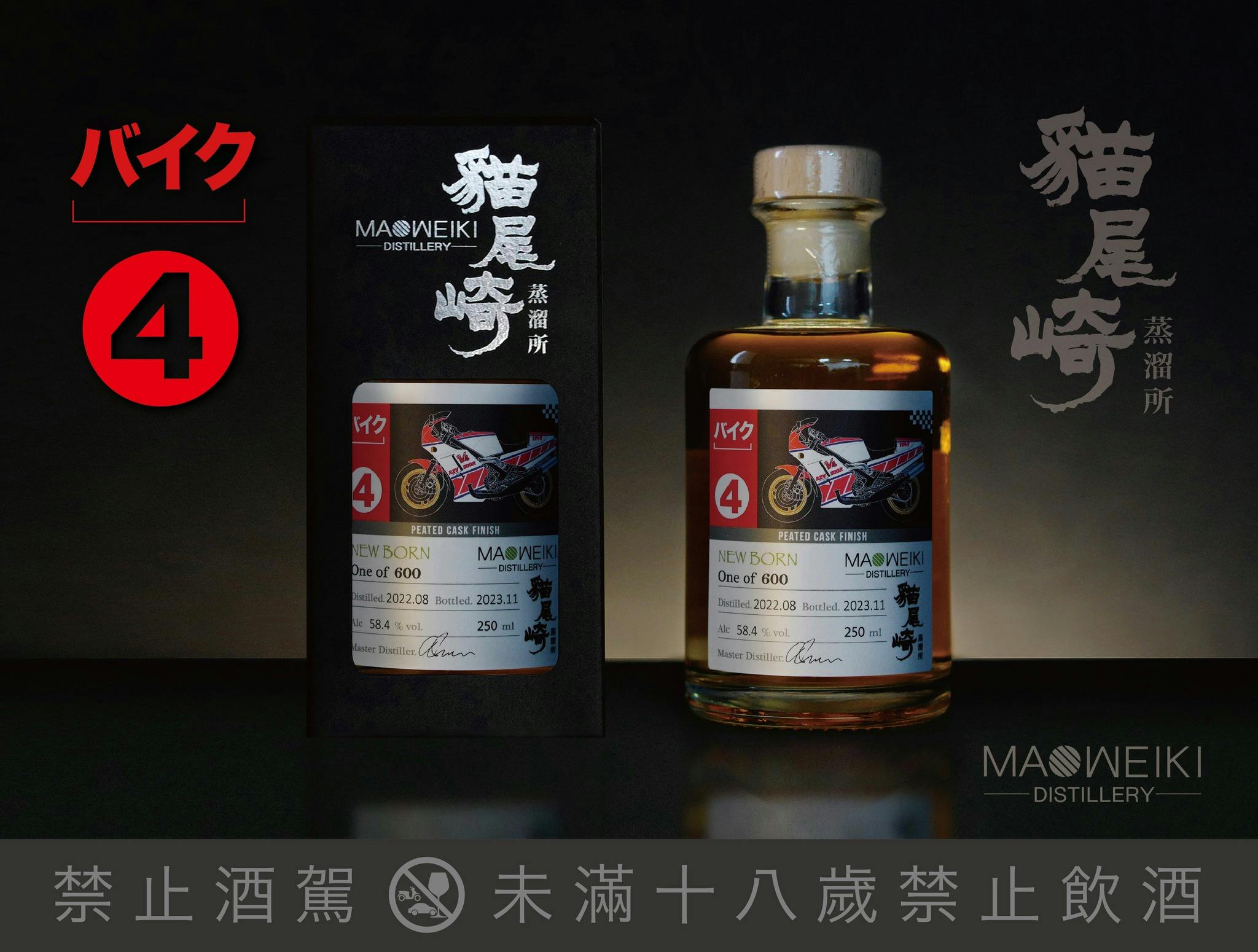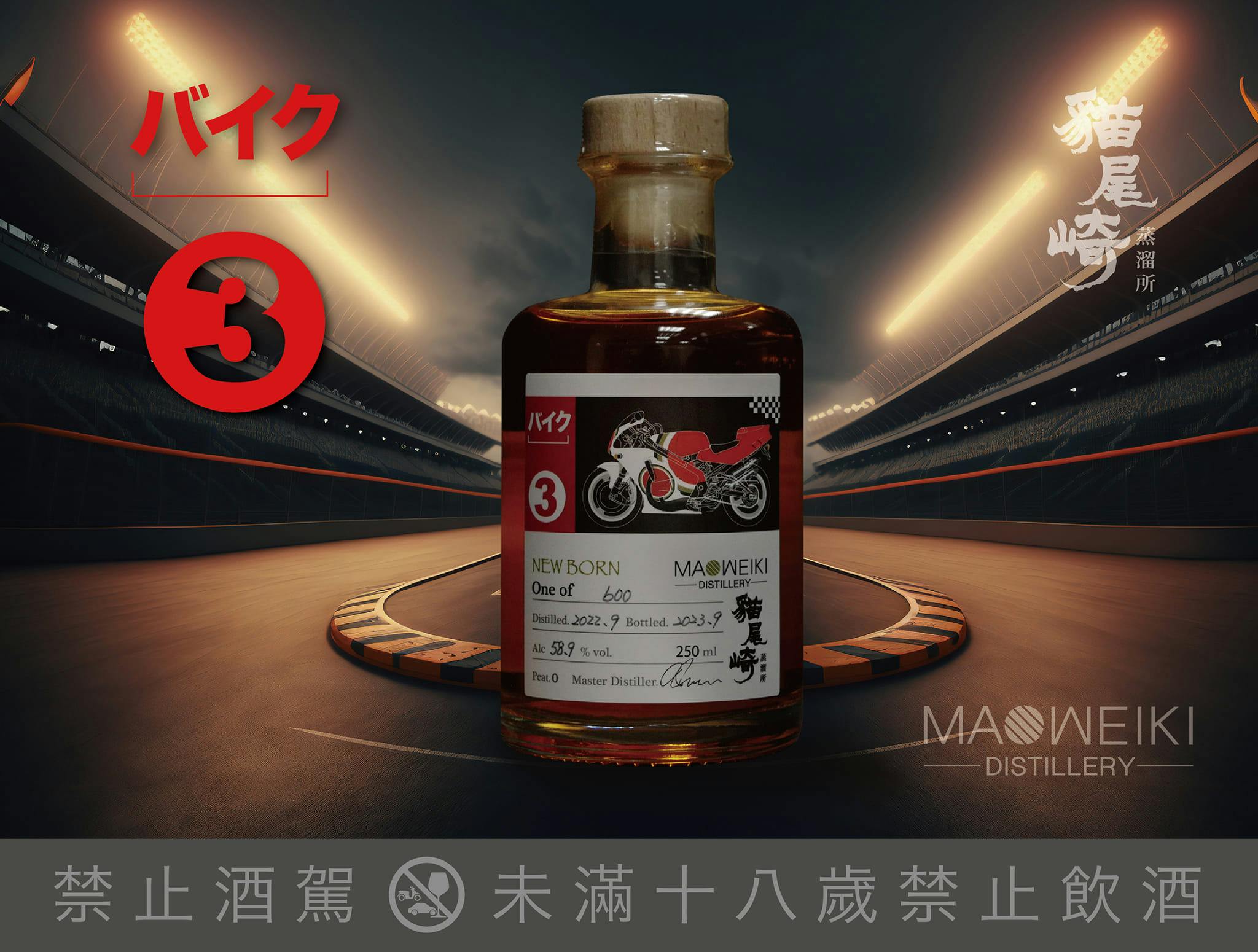 貓尾崎蒸溜所與知名經典重機社團 重機老野郎 合作,特別企劃的「摩托小威」經典系列,編號第2號的 NSR,將於2023年8月上市。「摩托小威」系列的設計重點在於詮釋經典年代的車型及刻意透視出來的排氣管型式。