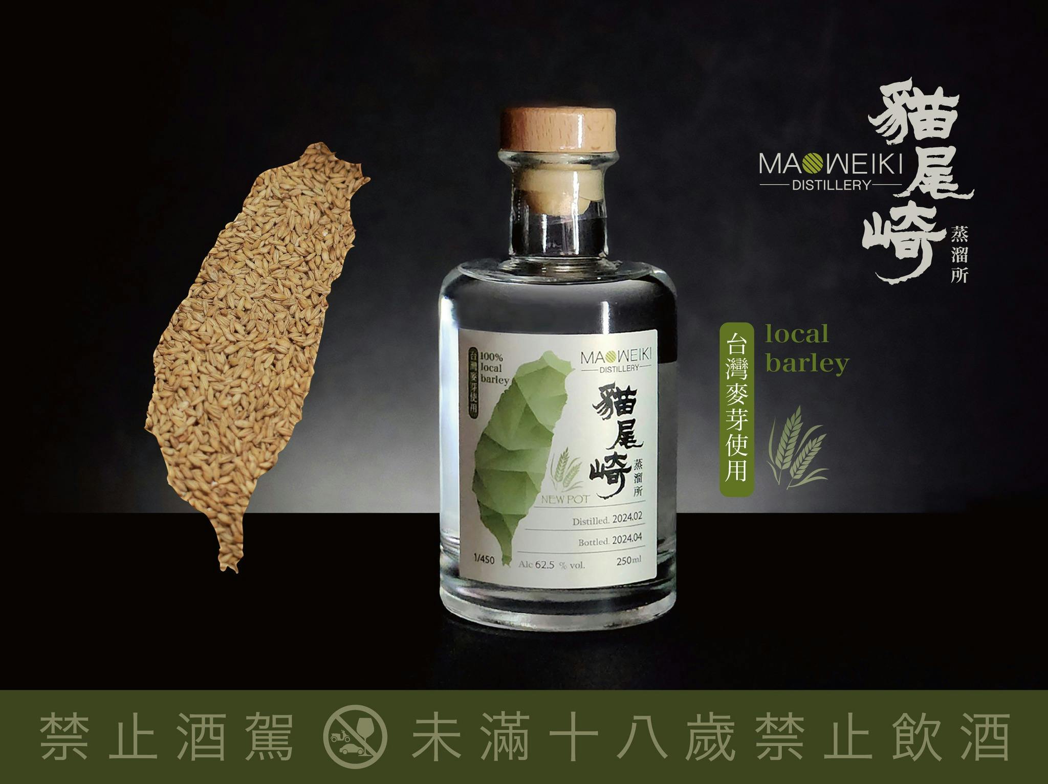 小酒廠的麥芽大夢想,一直是貓尾崎團隊的核心理念在經過不斷的實驗實作下克服各式各樣的難題,同時也在「台灣台中市.中都農業生產合作社」的積極協助之下我們終於以台灣本土麥芽之名蒸餾出new pot原酒(new make)或許在經濟的考量下本土大麥並不是商業首選,但自我期許的是可以在入桶熟成後在這原生土地上留下更多豐富的風土滋味。