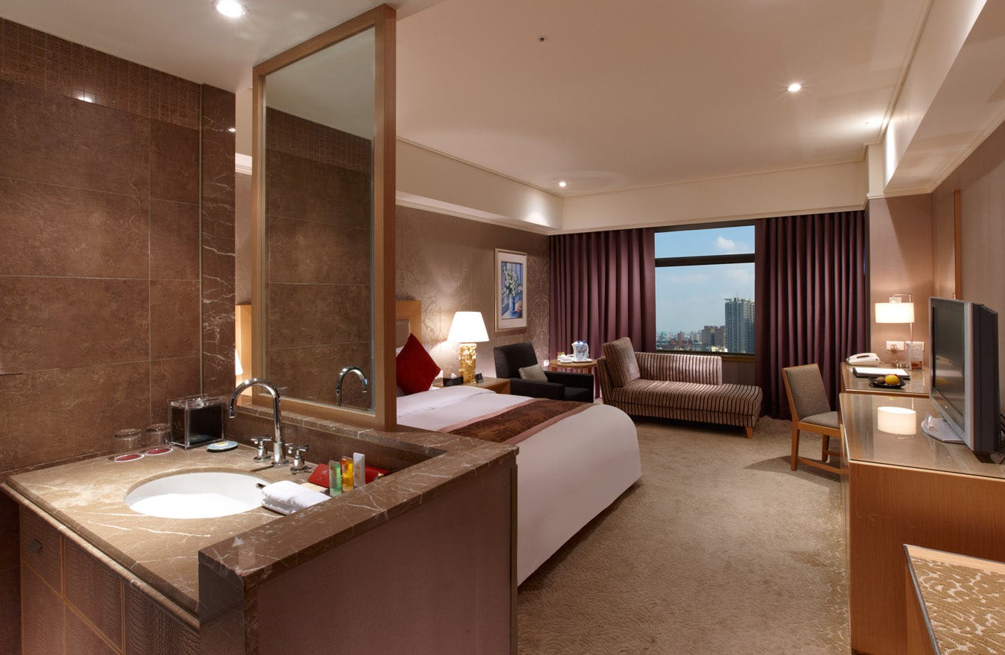 座落於B館6至16樓的豪華客房,每間都有對外視窗,以典雅悅目的各式傢俱,將優雅尊貴的房間設計重心表現得淋漓盡致。